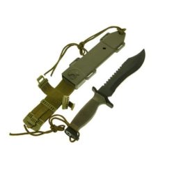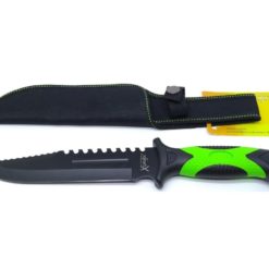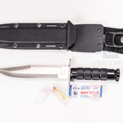 Faca em aço carbono de alta qualidade, acompanha bainha rígida com passador para cinto na cor preta, cabo com ponta rosqueável, que acompanha bússola e kit Sobrevivência